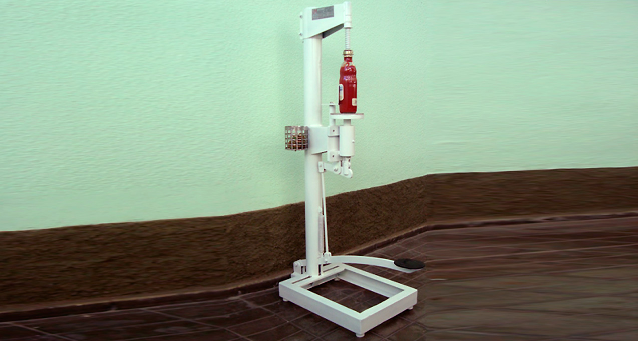 Tapadora de pie vertical con accionamiento a pedal para tapas corona (botellas y frascos).